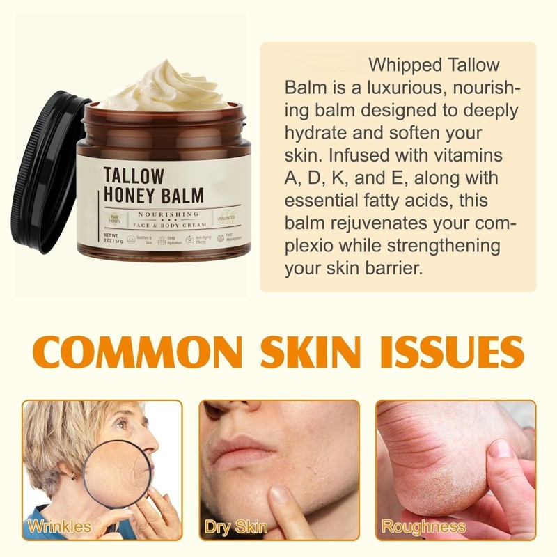 Beef Tallow Skincare Moisturizer for Face,B/eef Tallow and Honey Cream,Be/ef Tallow Moisturizer,Tallow and Honey Balm,Hydrating Face C/ream,Bee/f Tallow Cream,Organic Hydrating Beef Tallow Balm