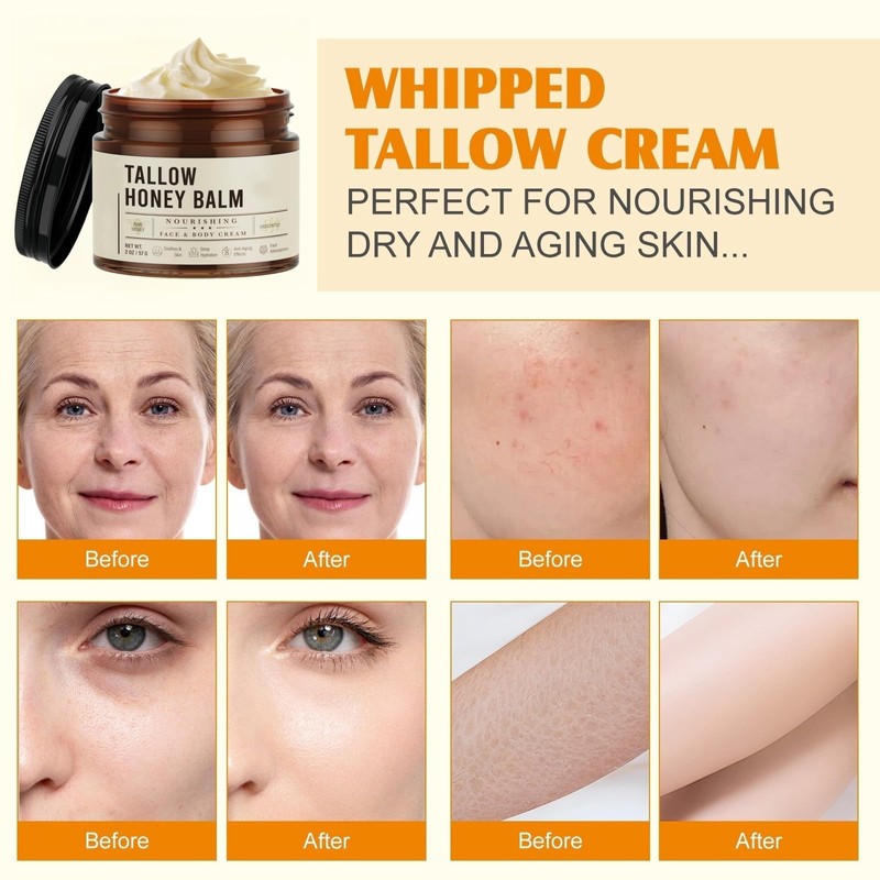 • DEEP NOURISHMENT:This beef tallow can effectively provide deep hydration for the skin, this beef tallow skin care can make the skin no longer dry and flaky, this skin care is a good partner in your daily skin care, this body moisturiser allows the skin to maintain moisture, this body cream will not let you down