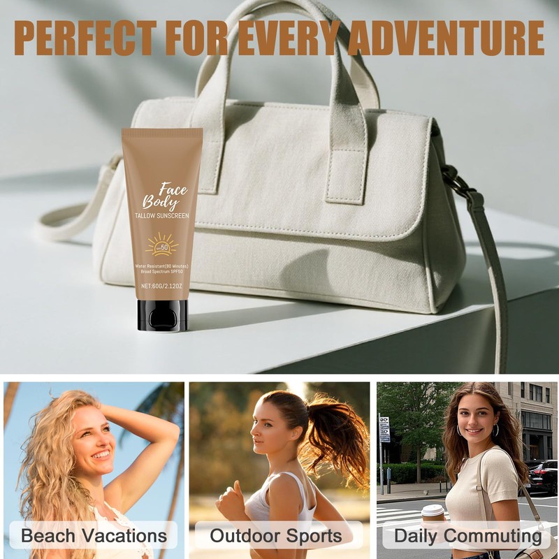 - 【SPF50 Protective Sun Cream】This tallow sunscreen SPF50 helps shield delicate skin from UVA/UVB rays while moisturising with beef tallow. Formulated to reduce sun exposure impact, it maintains hydration and supports skin's natural defences against premature ageing without irritation.
