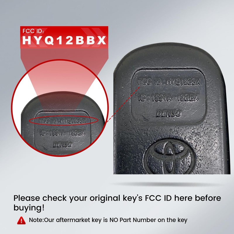 - 【Fit For】 FCC ID:HYQ12BBX, HYQ12BAN, HYQ1512Y, Part Number:89742-35021, 89742-35050, 89742-0C010, FCC ID/Part Number must match with original key. The remote key fits for Toyota 4Runner 2003-2009,for Toyota Sequoia 2004-2008. Please check if the FCC ID, Part Number, and Board ID are the same as your original key before purchasing