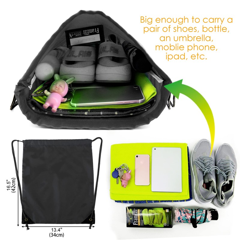 - 【LARGE SIZE AND LIGHTWEIGHT】: The size of these black string bags is very high 13.3 "× 16.5", which is very suitable for promotional gifts, company activities or external activities. Enough to storel daily supplies, such as cups, parasols, sunglasses, mobile phones, etc. The material is polyester, which is very light. Needless to worry that the string backpack will be heavy, and it is convenient to carry.
