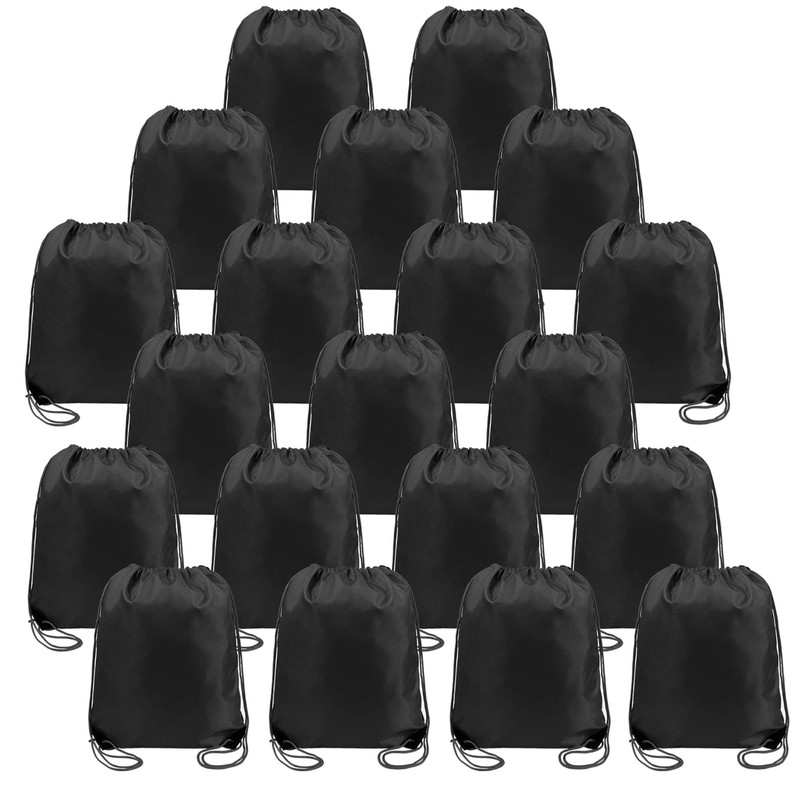 BeeGreen Black Drawstring Backpack Bulk 20 Pack, Christmas String Backpack for Gym Sport Trip,Cinch Sack with String, DIY Drawstring Bags for Women and Men