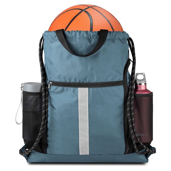 - HANDLE DESIGN and REFLECTIVE STRIP:String backpack has 2 handy carry handles allow for hand holding or hang it on the wall or door, very convenient for your use. Also the extra verticle reflective strips can enhance the high visibility to ensure your safe while in dark or dusk. Greatly reduce your chance of being hit at night.