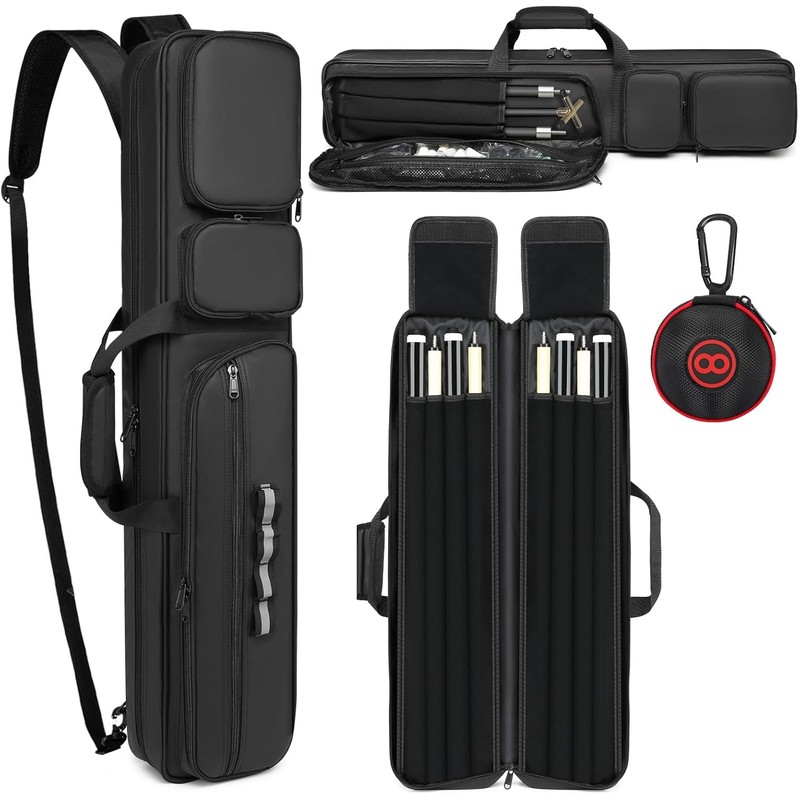 - 【Multi-functional pockets】: The pool cue case has 3 exterior pockets, a padded pocket to store cue extension accessories and a pocket to store billiard accessories. Use to store your phone or wallet, pool chalk, cue tips and more accessories to keep your items organized and easy to find.