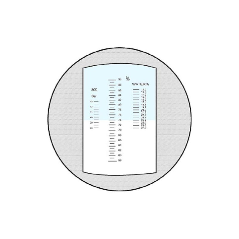 The supplied hand refractometer offers thanks to its triple scale and the built-in automatic temperature compensation (ATC) a high degree of precision and user comfort. At a Glance you can water content and density and refractive index reading. It comes in an extremely stable design with metal housing and plastic coated handle. The device has a high accuracy of ± 0.5% fixed in density and refractive index and ± 1% of Water Content).
