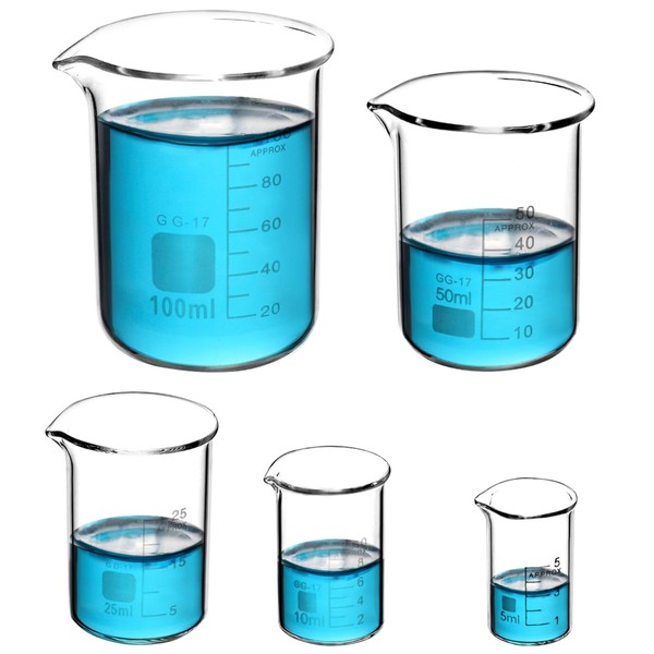 Beekeg Measuring Cups Small 5 ml + 10 ml + 25 ml + 50 ml + 100 ml Sets for Laboratory Measuring Cups