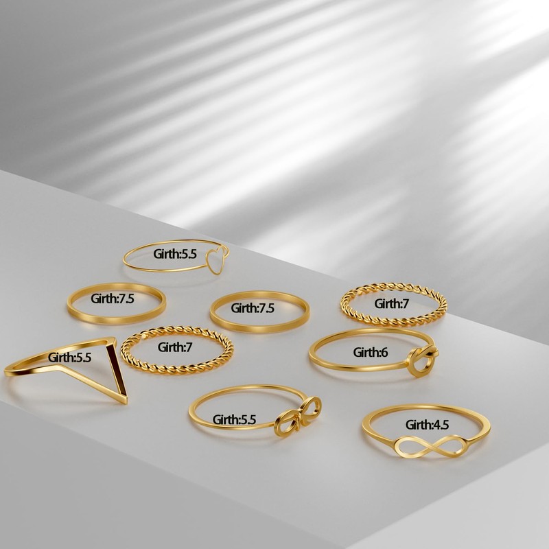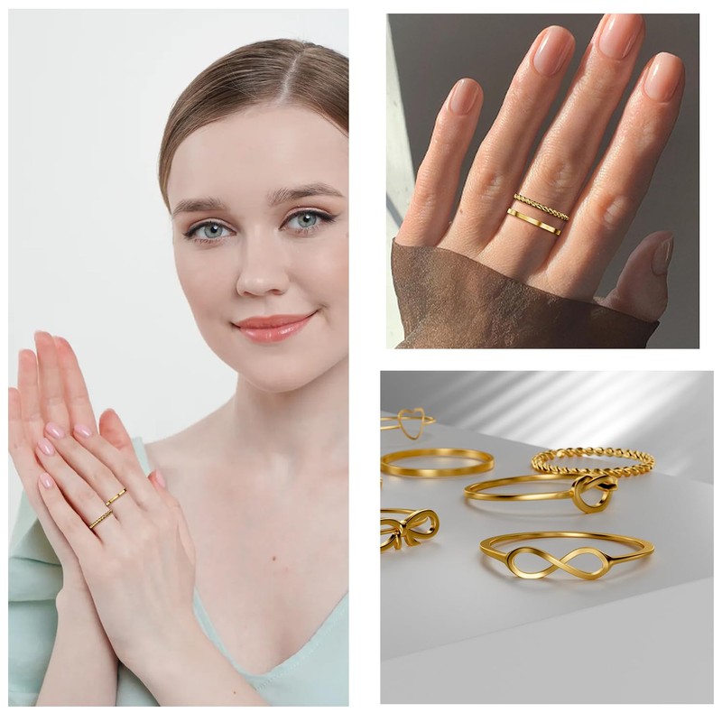 - Size: Gold fashion stacking rings for women are available in a variety of sizes to suit everyone's preferences. The gold ring design makes it ideal for stacking with other women's ring sets, or worn alone for a simple look