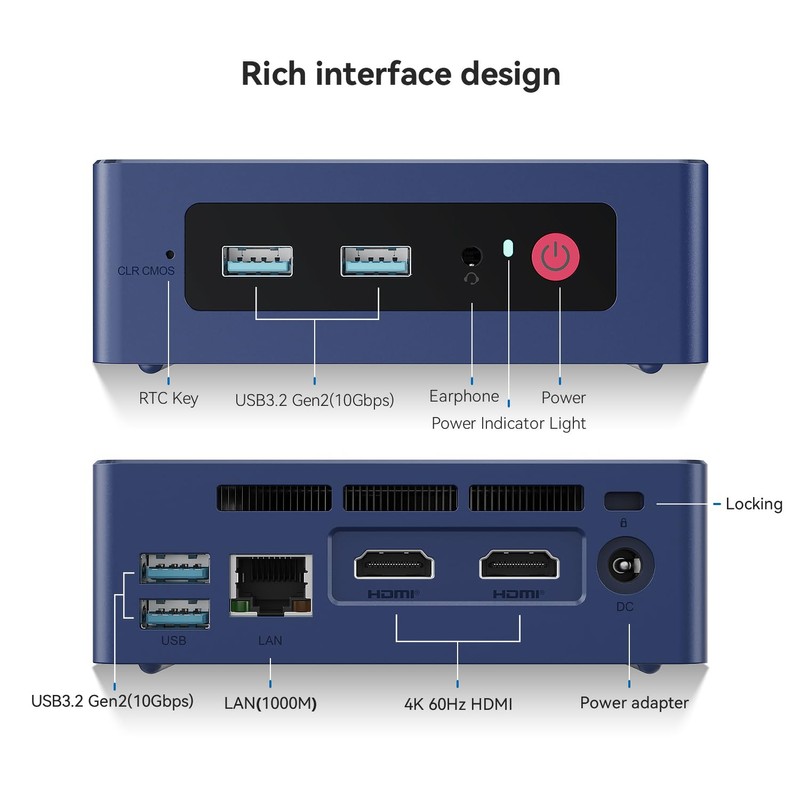 - 【Cooling System and Innovative design】The N95 mini pc Adopts Silent Fan + Heat sink provide cooling for the CPU processor that ensure MINI S12 stay cool and stable at 25W TDP.The newly upgraded USB3.2 Gen2 port runs at speeds up to 10gbps, 2x faster than USB3.0.WiFi5 enables fast data transfer to meet your daily use needs.Lower latency Bluetooth5.2,more stable to connect to multiple wireless devices such as monitor, projector, printer, speakers and etc