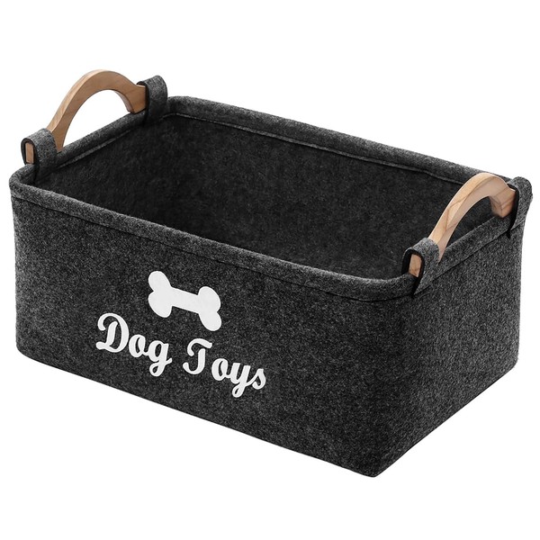 BEELUKY Dog Toy Storage, Felt Storage Box for Dog Toys, Foldable Toy Box with Handle for Storing Pet Supplies and Pet Toys, Dark Grey