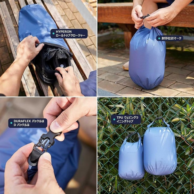 - CONVENIENT GEAR - 2L/4L/8L size, 2L is suitable for snacks, travel necessities, gloves, hats, etc; 4L is suitable for shell jackets, gloves, beanies and more; 8L dry bag is suitable for storing down sleeping bags or replacement clothes