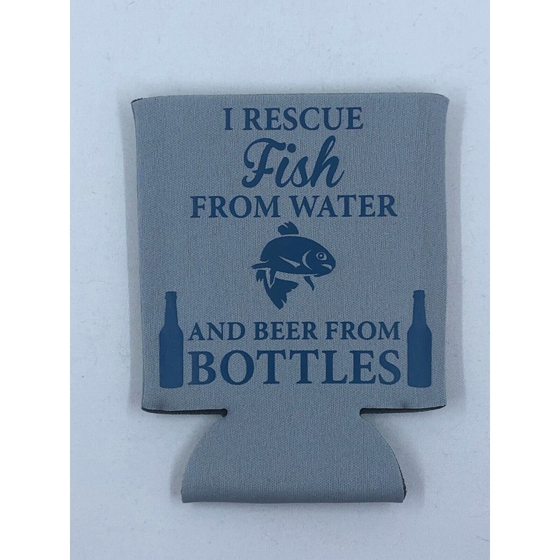 Beer Soda Can Coozie Koozie I Rescue Fish From Water and Beer From Bottles