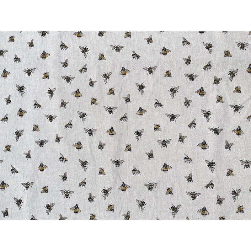 Bees Cotton Fabric by The Metre Bee Yellow Sewing Material by Yards Grey Textile by metres Insects Bugs Pattern Canvas for Upholstery Pillows Arts Crafts