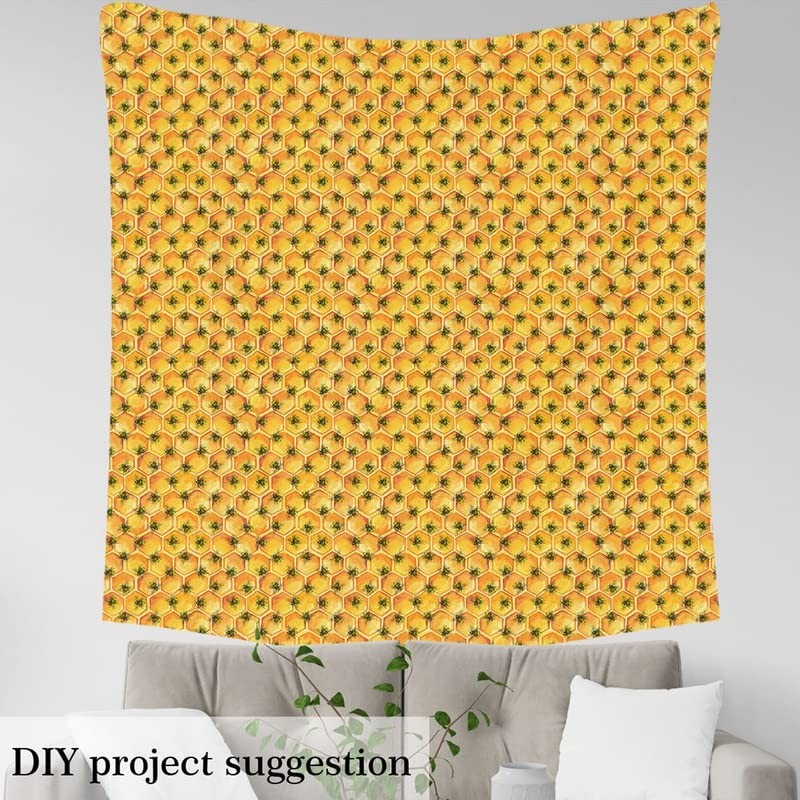Bees Upholstery Fabric for Chairs, Honeycomb Hexagon Pattern Fabric by The Ya...