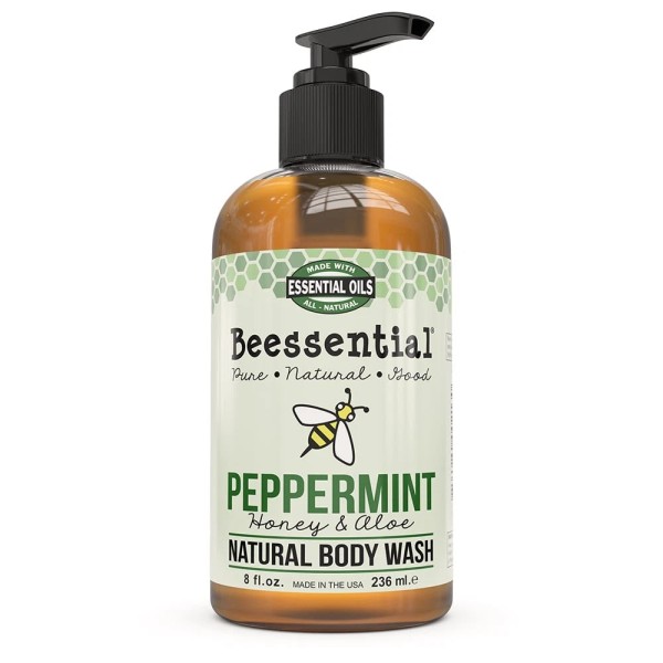 Beessential Natural Body Wash - Peppermint with Honey and Aloe, 8 ounces