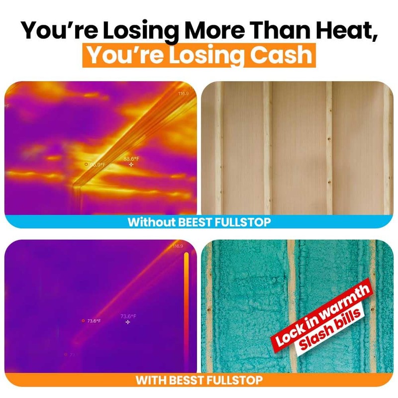 - Beest FullStop DIY Spray Foam Insulation Kit: Our spray foam insulation delivers exceptional thermal insulation and soundproofing, achieving an R-Value of 8.14 with the recommended 2-inch application thickness. It is perfect for walls, ceilings, uneven surfaces, and hard-to-reach areas where traditional insulation falls short.