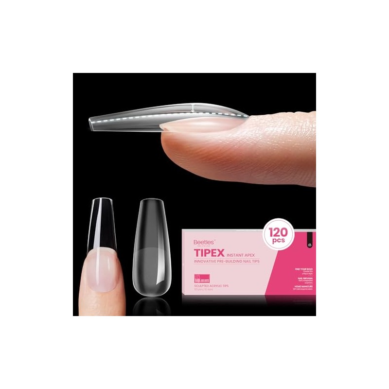 - Beetles Tipex Nail Tips 2024 Upgraded: Tired of wasting time on nail prep? Tipex pre-sculpted, pre-etched and pre-shaped acrylic nail tips are here to rescue you! Beetles Tipex Nail tips come with a ready-made instant apex and c-curve, eliminating the tedious tasks of layering, filing, and shaping. Get ready to speed up your mani process with nail drill and save valuable time! Designed specifically for flat nails.