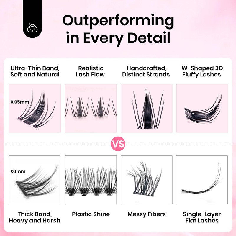 - Next-Gen Cluster Lashes: Ultra-Fine 0.05mm band provides a featherlight, zero eyelid pressure, comfortable to wear. Use Ultra-soft fiber, show realistic lash flow. Invisible band seamlessly blends with natural lashes. These individual lashes are ideal for everyday use or special occasions. Look stunning without the weight or irritation.