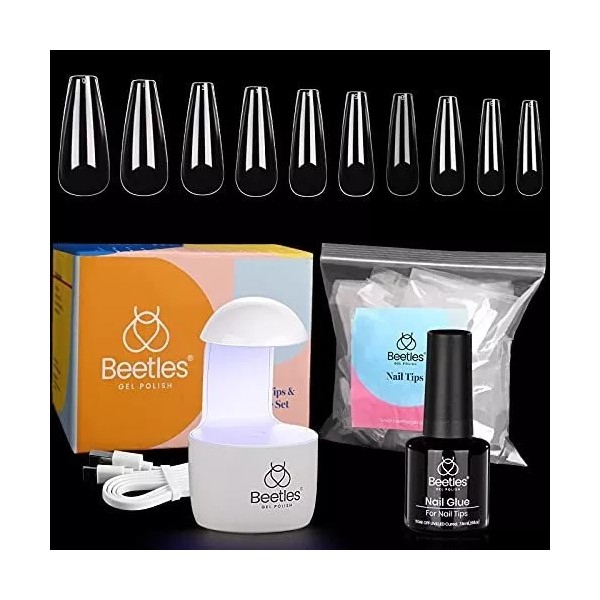 Beetles Nail Tips and Glue Gel Nail Kit, 2 In 1 Nail Gel and Base Gel with 500Pcs Coffin Nails and I