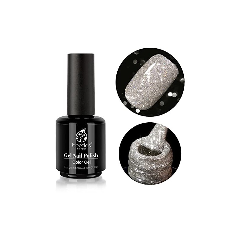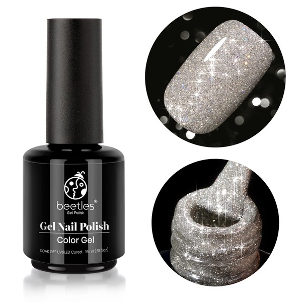 Beetles Reflective Gel Polish Color 15ml Nail Gel Silver Glitter Nail Gel Soak Off LED Nail Lamp Gel Polish Nail Art Manicure Salon DIY Home Diamond Gel 0.5Oz