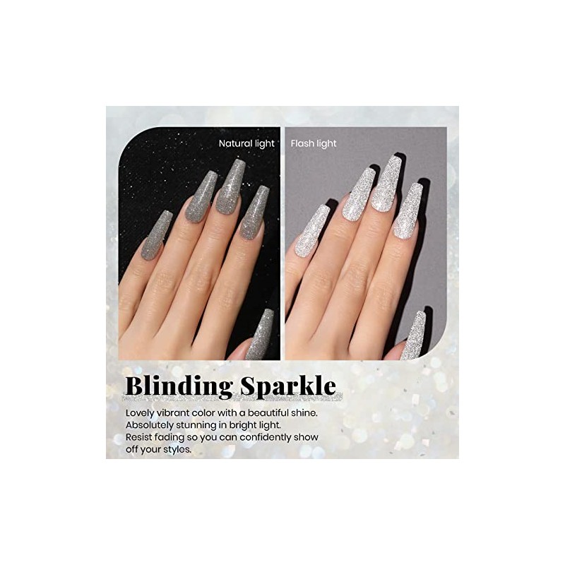 - Personal Style: Beetles diamond gel nail polish reflective silver glitter color, sparkly nails shining differently under different lights.