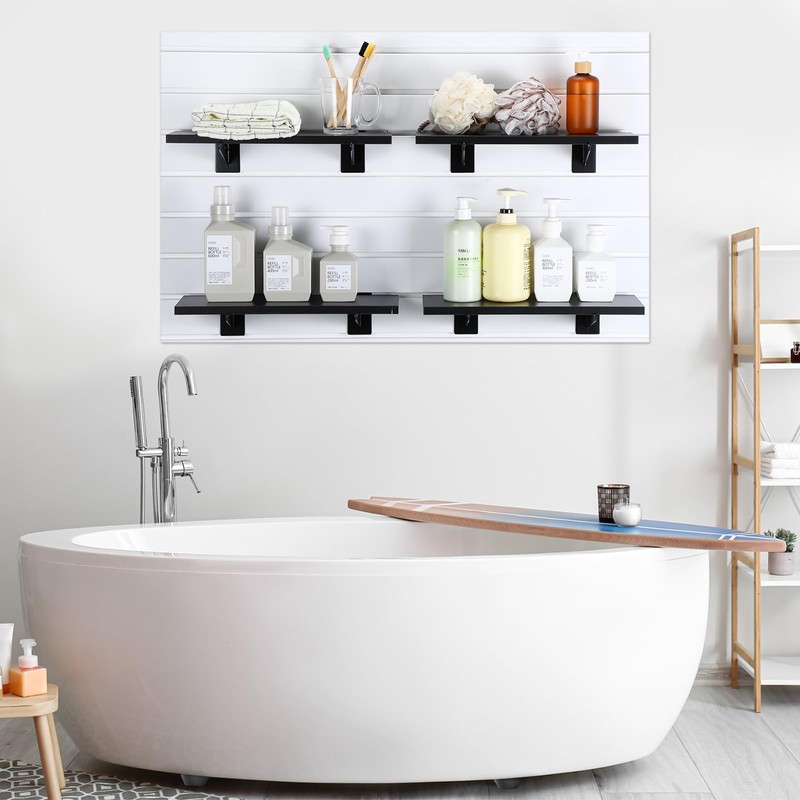 - Plenty of Storage Solution: providing an abundance of space for your belongings, this set comprises 4 slatwall shelves and 8 metal brackets that offer versatile display and storage options; Craft them into four slat ledges and watch your space transform from clutter to harmony, they will meet your usage needs and replacements, helping to organize and clean the space