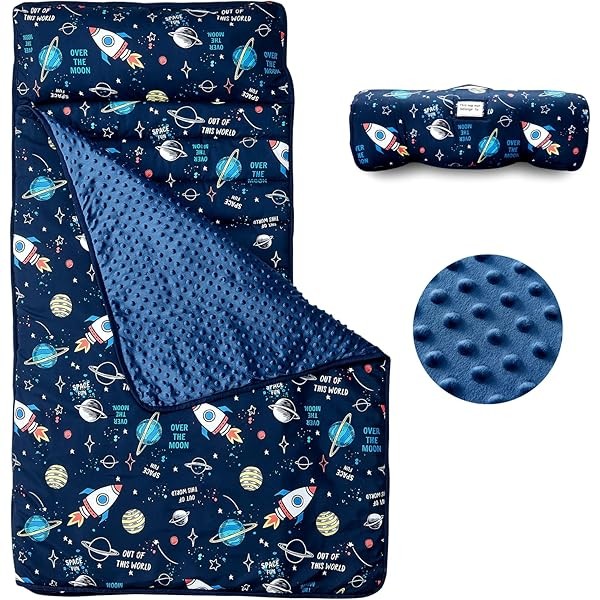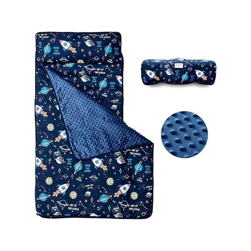 beeweed Toddler Nap Mat, Rollup Design Kid Sleeping Mat with Removable Pillow & Minky Blanket, Toddler Sleeping Bag for Daycare Preschool Travel Camping