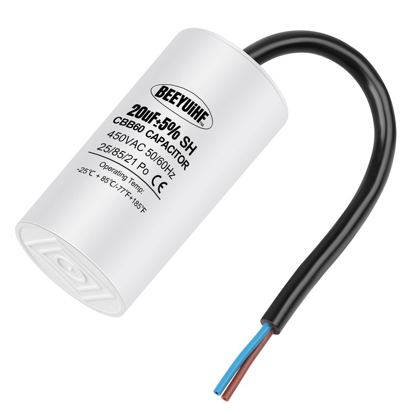 BEEYUIHF CBB60 450V 20uf Motor Capacitor, 50/60Hz Capacitors, Starting Capacitor with Cable, 20µF 450V Motor Capacitors for Electric Motor - 38 x 70 mm
