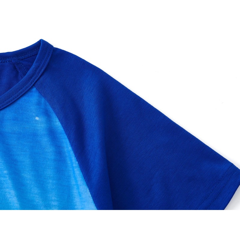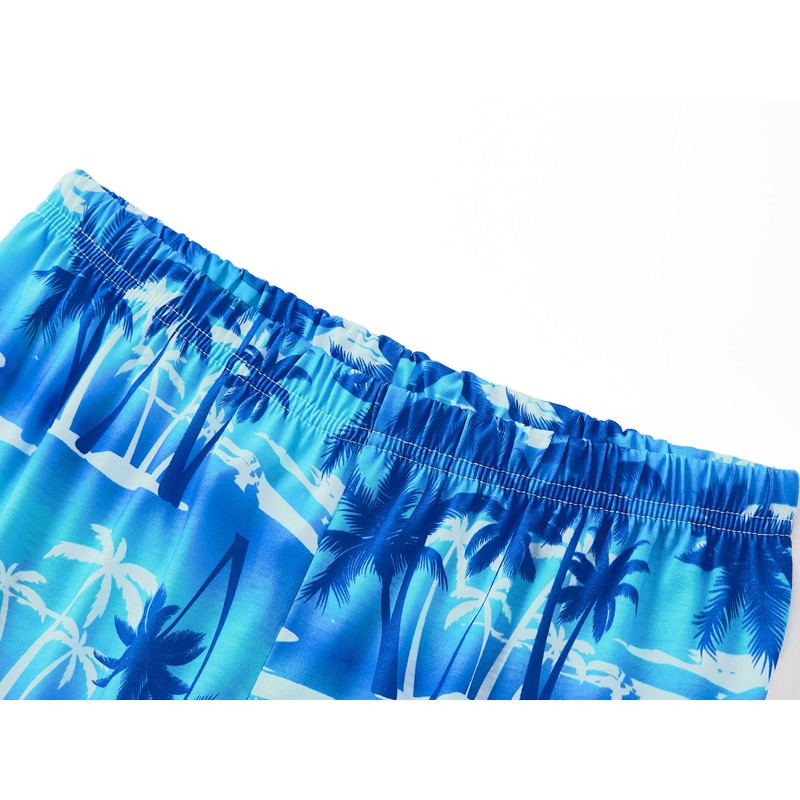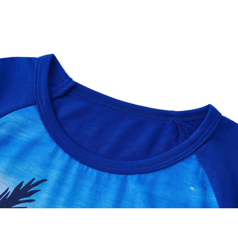 - Feature: This boys' loungewear features the swim ring dino and coconut palm graphic with the text of " NO WAVES NO FUN " on the blue top, all-over the coconut palm print on the light blue pajama pants, making this an extra fun and beloved casual clothes set for boys at bed time. Crewneck & raglan short sleeves on top. Pull-on elasticized waistband on the PJ pants for on-and-off convenience. The interesting patterns will make the boys stand out on Pajama Day or slumber party.