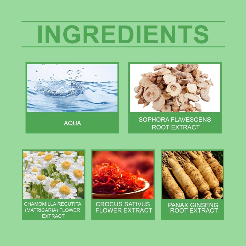 • Gentle Formula: plant-based mild formula for sensitive skin, Suitable for both men and women ingredients: Aquasophoraeroot extractchamomilla recutita(matricaria) flower extractcrocussatvus flower extractpanax ginseng root extract