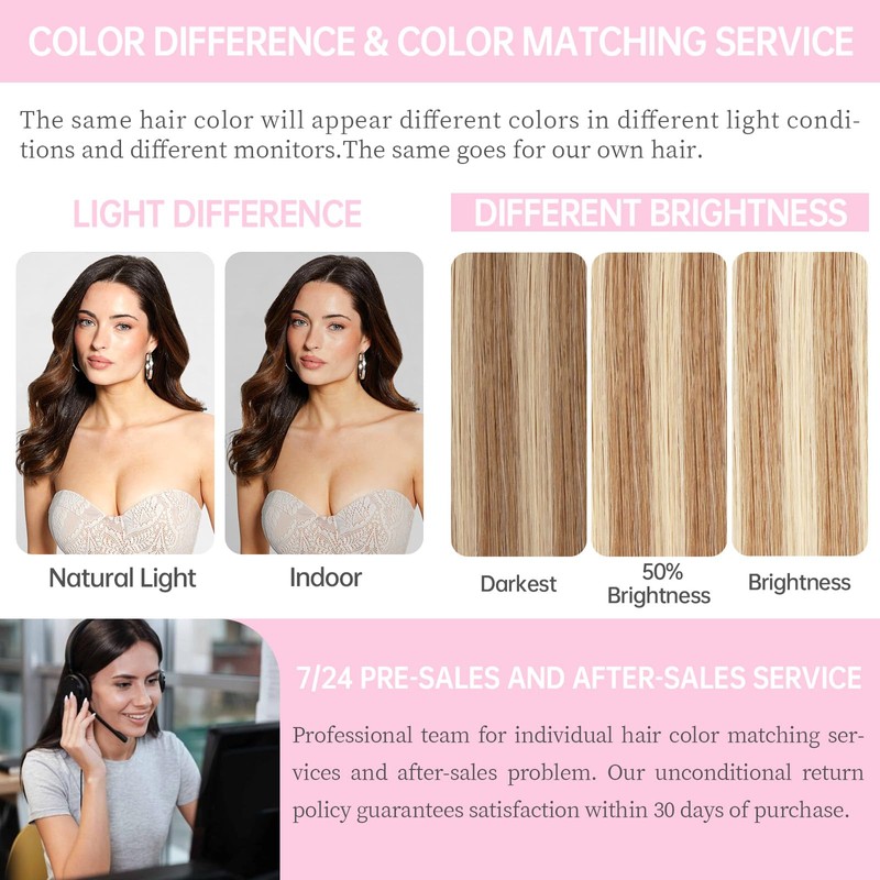 - 5.Important Notes: Please note that Because shooting light and display screen are different,there may be a small color difference between the hair image and the actual hair.If you are not sure which color to choose,we can help you match your hair color.. If you experience any issues, please let us know and we will quickly help you solve the problem and give you a satisfactory result!