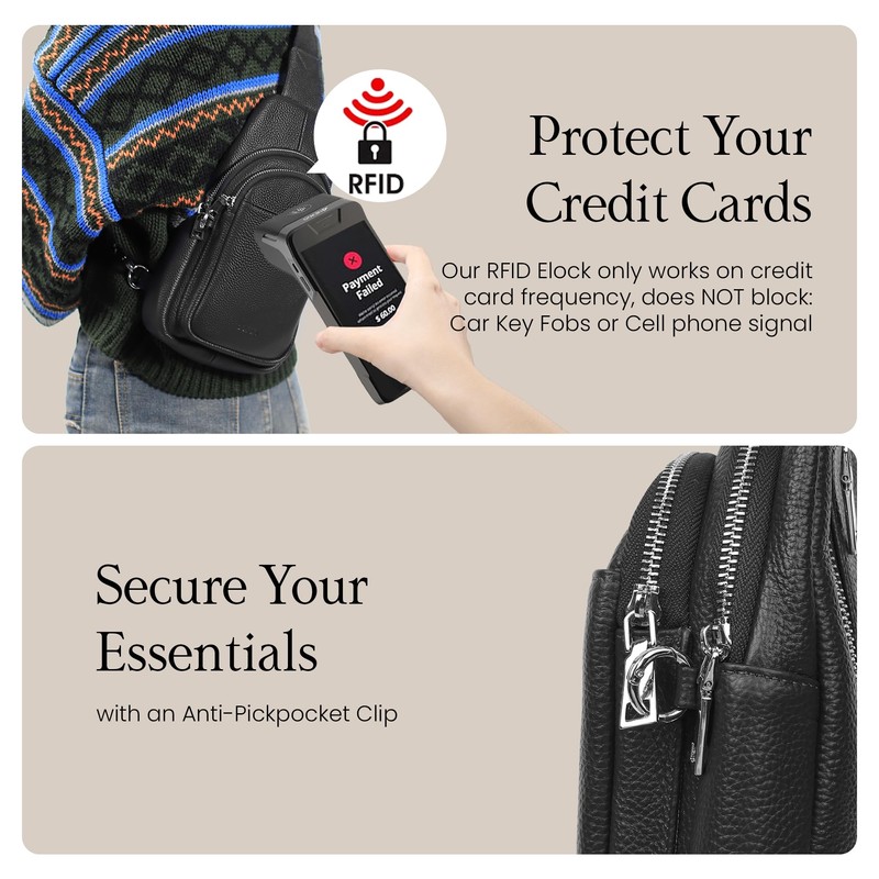 befen Black Crossbody Bag for Women Genuine Leather Sling Bags for Women Small Fanny Pack for Ladies RFID Blocking Chest Bag with Multiple Pockets