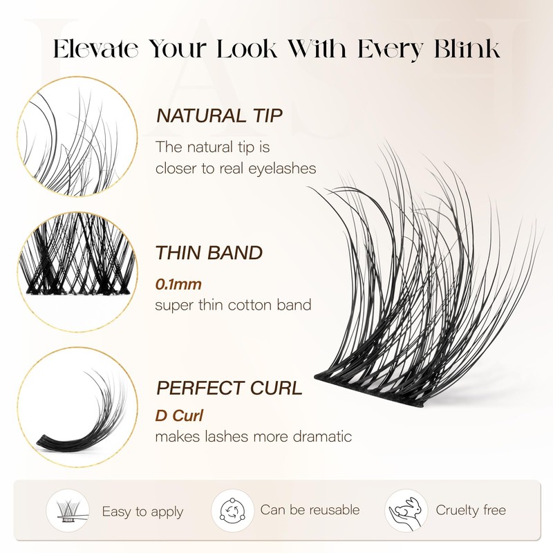 - Your Perfect Lash Solution--Lash Cluster Kit: Experience effortless and beginner-friendly lash enhancement with our all-in-one DIY lashes kit, featuring nice clusters, long-lasting bond and seal, a lash applicator, and gentle remover for stunning, salon-quality results at home