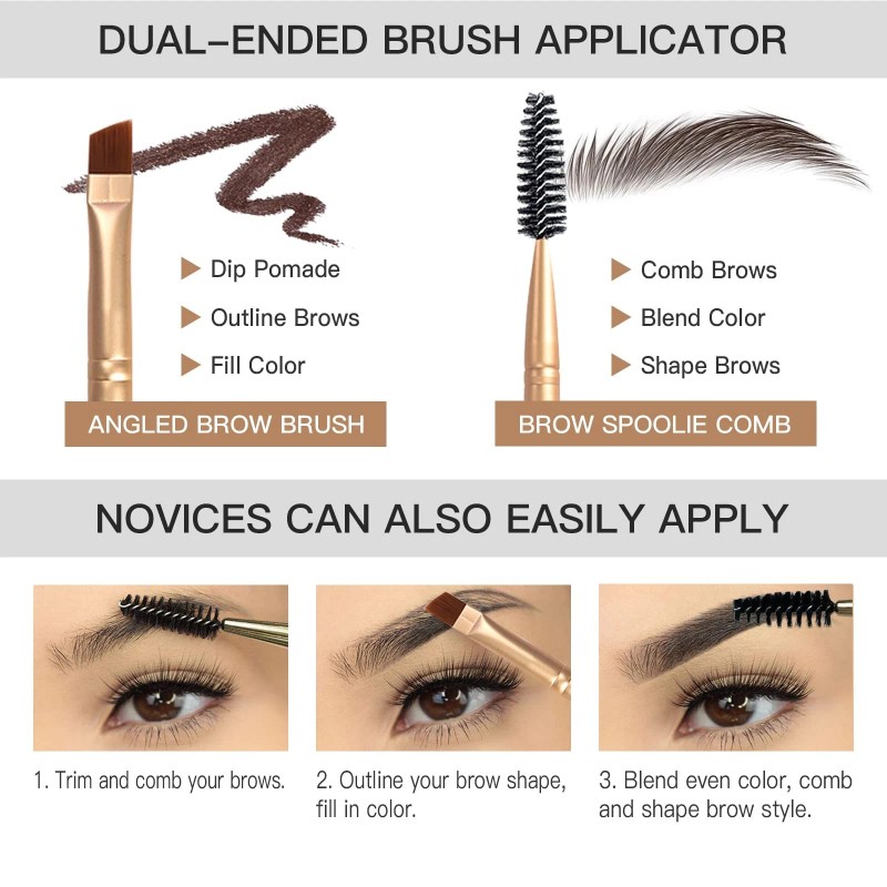 1. This Eyebrow Pomade Kit includes an eyebrow pomade and a dual-ended eyebrow brush, perfect for beginners and ladies who are not good at makeup.