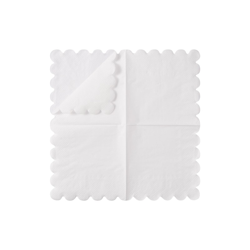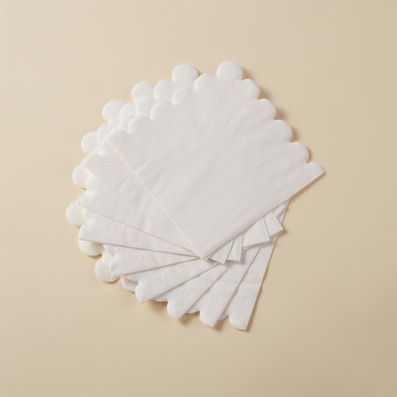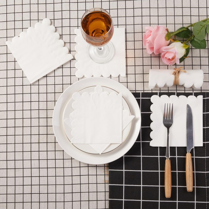 BEFORYOU 100 Pack Cocktail Napkin 2-Ply Scalloped Edged Dessert Napkins Folded 5 x 5 Inches Disposable Napkins for Dinner Wedding Birthday Party Bridal Anniversary Reception Event (White)