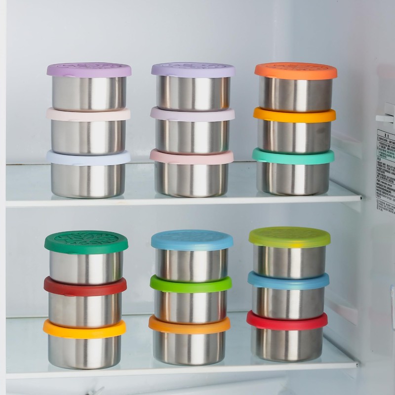 - stainless steel snack containers for kids salad dressing container to go small metal food containers with silicone lids mini 3x7oz lunch containers easy open leakproof and reusable metal toddler condiment lunch box for school snack box set