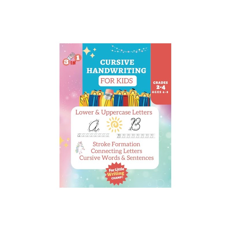 Beginners Cursive Handwriting Book for Kids Ages 6-8 , Grades 2-4: Handwriting Practice Book With Letter Tracing, Words Formation, Funny Sentences To Master The Art Of Cursive Penmanship