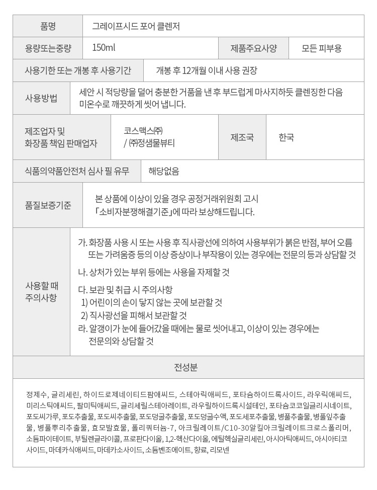 비긴스 바이 정샘물 그레이프시드 포어 클렌저 (증정 포어클리어패드(2매))