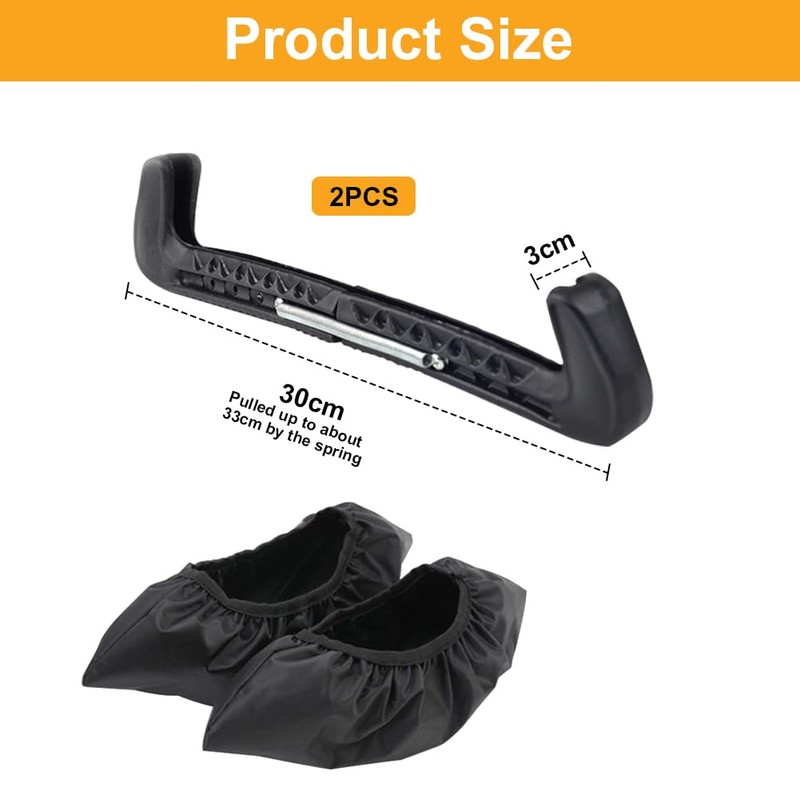 - Adjustable: the adjustable ice skate blade protector is 30 cm long and has an additional spring construction, which can be adjusted to approx. 33 cm. The protector is suitable for blades with a thickness of 3 mm skates. The dust-proof shoe covers are suitable for roller skates under 45 yards.
