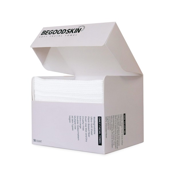BeGoodSkin Disposable Face Towel, Large Size, Biodegradable Facial Towelettes for Skincare and Makeup Removal, Daily Use, Extra Soft & Thick, Dry Wipes, 50CT