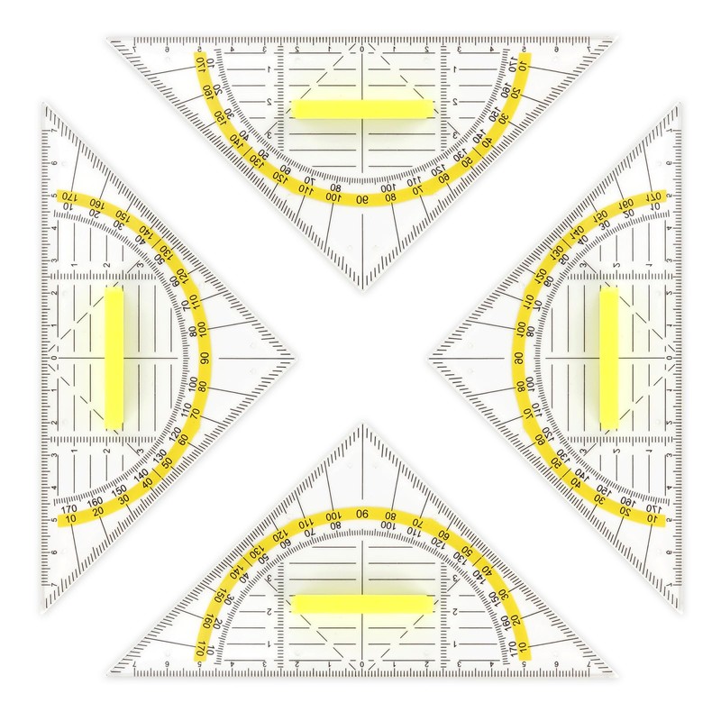 Behiruch Set of 4 Small Set Squares with Handle 14 cm Flexible Triangle Transparent