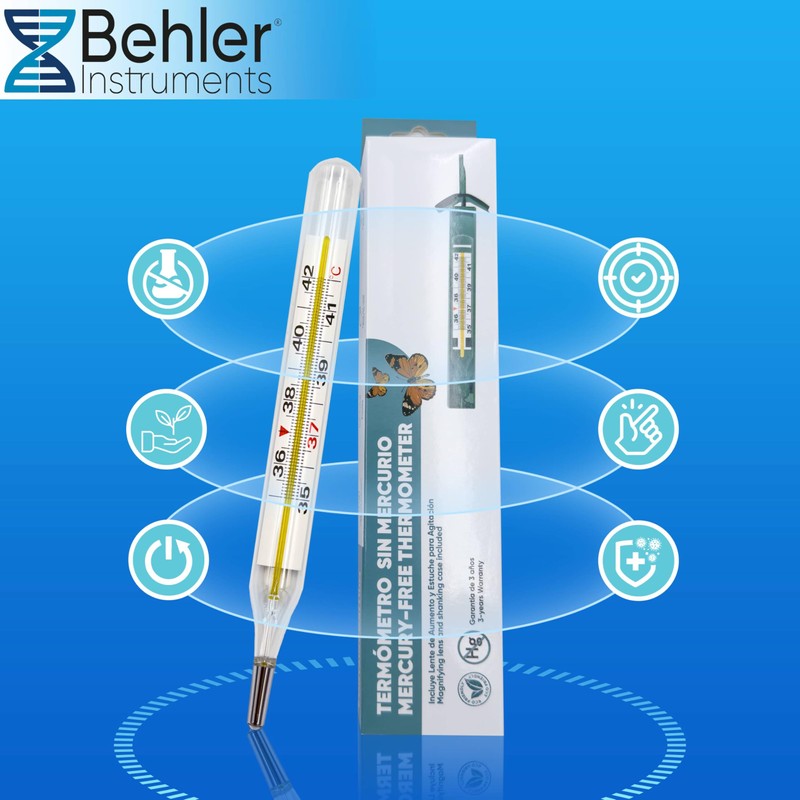 Behler Instruments - Fieberthermometer Analog - Sicher und Präzise, quecksilberfreies - Thermometer - Für Kinder und Erwachsene - Mit Vergrößerungsglas und Schüttelhülle - Für Haus- und Klinikgebrauch