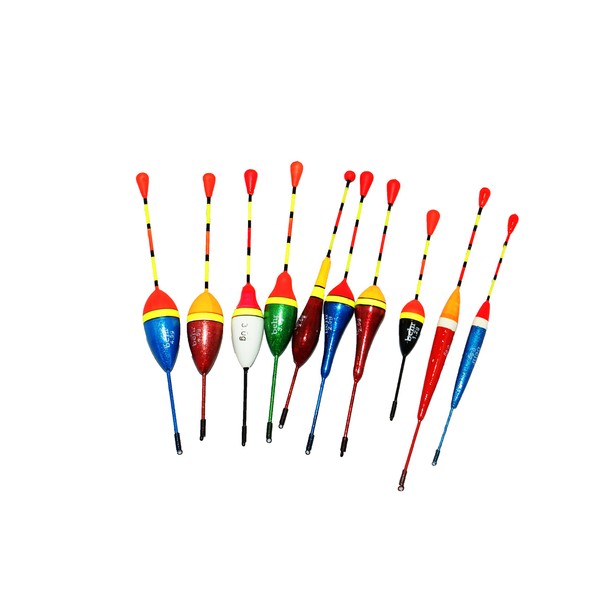 - Set contains 10 floats for fishing from 0.6g to 4.5g capacity.
