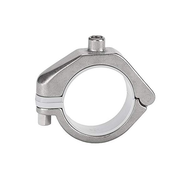 The CHT Series hanger is a one piece unit with a threaded adapter attached to the housing. Rod is sold separately. The threaded adapter on the top of this unit can be used as either a threaded rod connector or a welding platform. The connection is rigid and does not allow for any slope adjustment. For installation simply weld this unit to a support structure or use with a threaded support rod. The support rods can either be welded to a support structure or used with one of Behringer's support stands which allow the support to be adjusted telescopically to the tube or pipe elevation for a perfect fit. These are available in either 304 or 316 Stainless Steel, both have a 25 Ra finish.