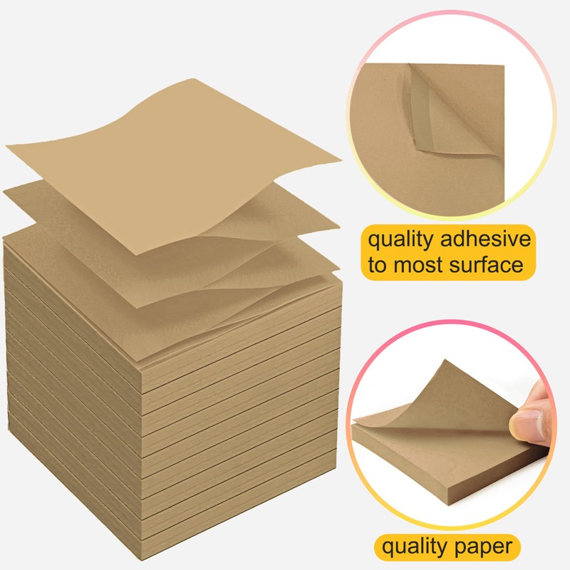 - PACKAGE INCLUDE: Pop up sticky notes set includes 48 pads in kraft, 80 sheets/pad, 3840 sheets in total, ensuring you have plenty of notes to use for all your tasks and projects.