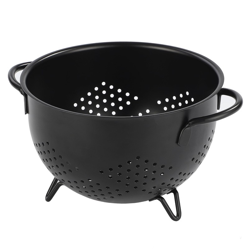 beifeier Metal Colander 5 Quart Self-draining Kitchen Strainer with Base, Double Handles, Pasta Fruit Vegetable Basket (BrightBlack)