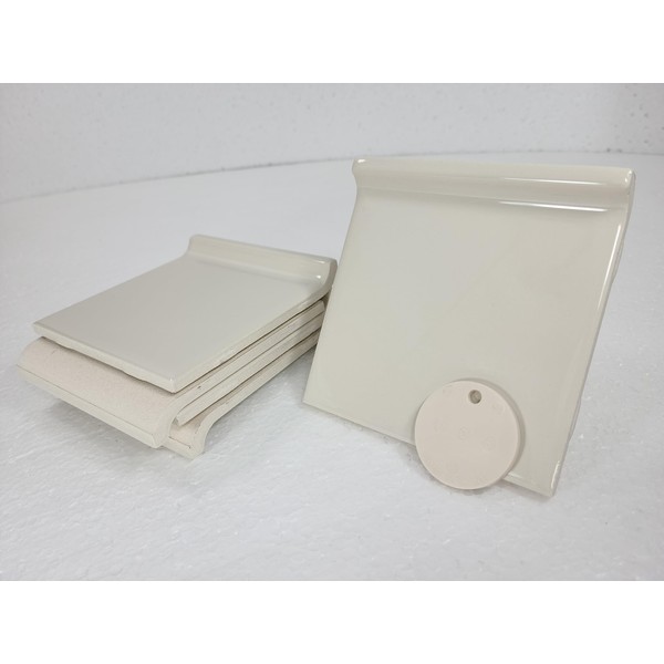 Beige Bone Almond Ceramic Tile Backsplash Cove Base 4.25 in Subway Square Wall Baseboard Floor Transition Trim Rounded Curved Edge 5 Piece Box