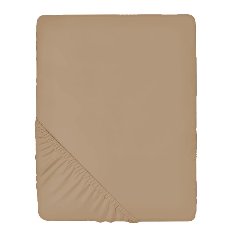 Beige king size fitted sheets Non-iron, Soft, Plain 200TC polycotton bottom bed sheet for thick mattress