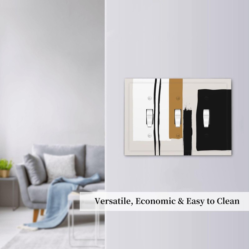 Beige Yellow Mid Century Abstract 3 Gang Light Switch Plate Decorative Triple Toggle Wall Plate Cover Electrical Faceplate Socket Dimmer Switchplate