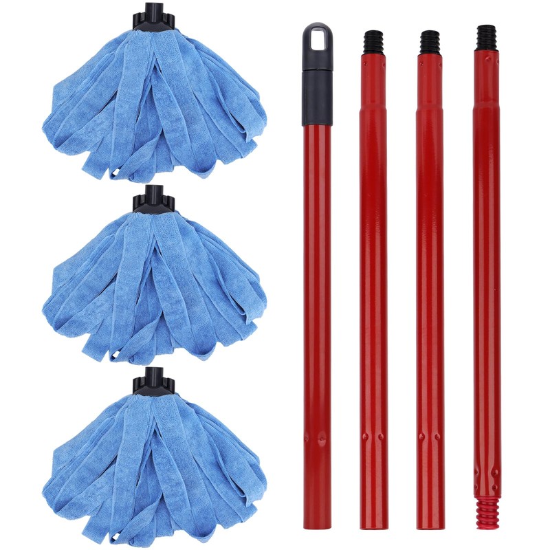 - Microfiber Mop Cloth Heads Replacements - One Mop Handle with Three Blue Microfiber Cloth Mop Heads Compatible with All Standard US Threading Pole Mop Handle