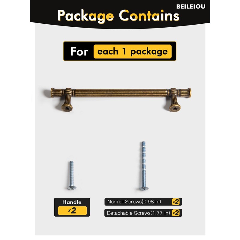 - 【Versatile Appicatications】BEILEIOU cabinet pulls can be applied to all your furniture doors, including kitchen cabinets, dressing tables, bedside tables, Tv cabinets, wardrobes, bathroom cabinets and so on. You can install it easily by yourself with fun & creativity.